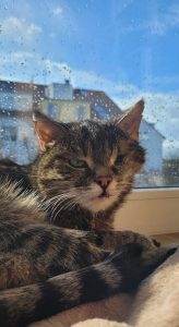 Inzwischen ist Avil nach einem körperlichen Absturz (wog nur noch 2kg, wollte über 1 Woche nichts an Futter zu sich nehmen und musste stationär beim TA aufgenommen werden) wieder fast die „ALTE“, nur einäugig und um so charakterstärker als zuvor. Sie weiß genau was sie will und zeigt wieder alle Facetten einer Katze – sie spielt, tobt herum, kuschelt viel, kommuniziert und auch ein Lieblings – Rezept ist gefunden. Noch mag sie keine Stücke im Futter und bekommt ihr Nassfutter in der Pflegestelle als Brei oder Süppchen serviert. Wer Avil mit ihren Schrullen gern kennenlernen möchte, schreibt bitte mit ausgefüllter Selbstauskunft an die Katzenemail, oder meldet sich direkt bei uns im Tierheim. Gerne darf Avil in der Pflegestelle besucht werden. Derzeit tendieren wir zu einer Vermittlung als Einzelkatze, da sie anderen Katzen durchaus auch sehr forsch und selbstbewusst entgegen tritt. Vielleicht ist sie aber auch mit einem sozialen, nicht allzu unterwürfigen Partner gut zu vergesellschaften. Nach dem Einleben im Neuen sollte Avil trotz Handicap wieder Freigängerin werden. Aufgrund ihrer Einschränkung wünschen wir ihr das in einer ruhigen Umgebung.
