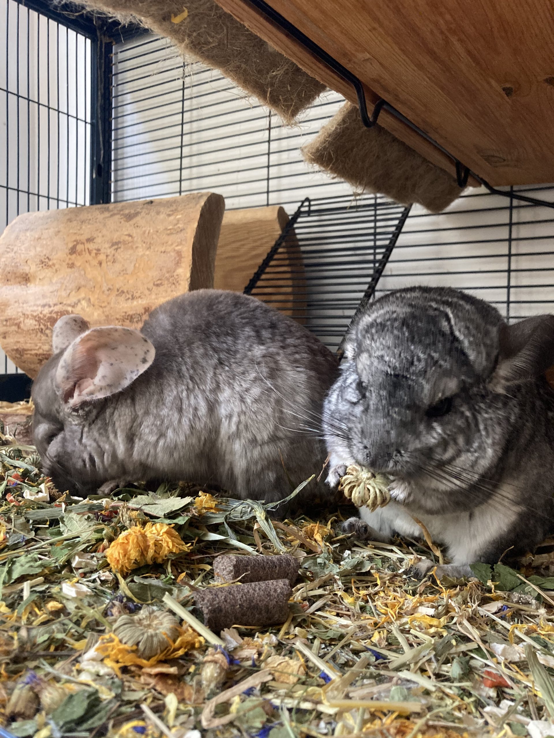 Die beiden bezaubernden Chinchilla-Mädchen Emma & Frieda sind etwa 1,5 Jahre jung und derzeit bei uns im Tierheim untergebracht.