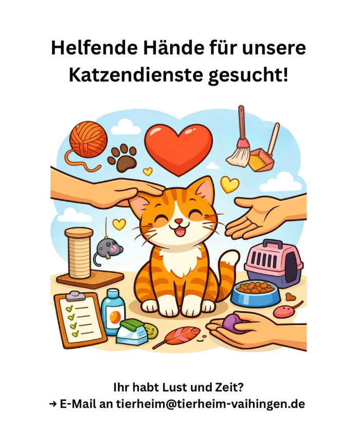 Du liebst Katzen und möchtest deine Zeit sinnvoll nutzen? Wir suchen aktuell ganz gezielt Verstärkung für unsere Samtpfoten in der Quarantäne (Mindestalter 18 Jahre) sowie im Vermittlungstrakt.