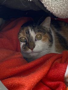 Antonia lebt bei uns noch sehr zurückgezogen. Ihr Lieblingsplatz ist aktuell meist unter Kuscheldecken, nach dem Prinzip „seh ich euch nicht, seht ihr mich nicht“. Schleckpaste ist zur Zeit das Einzige, was ihr Interesse weckt und wie man sie kurz mal zu Gesicht bekommt.