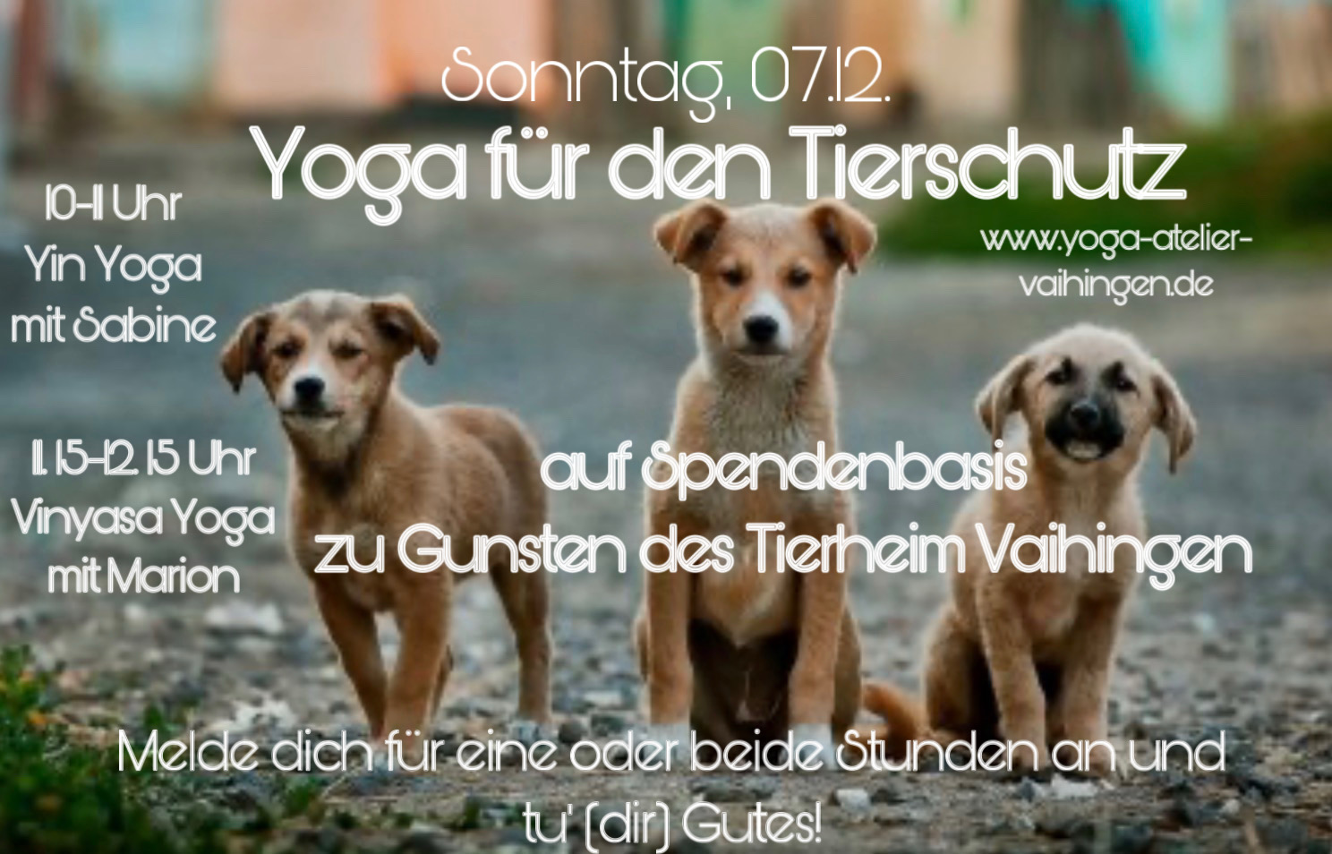 Das Yoga Atelier in Vaihingen veranstaltet eine wundervolle Spendenaktion, bei der alle Einnahmen direkt an unser Tierheim gehen.